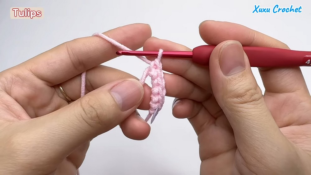 • Crochet 2 single crochet stitches into the last stitch.