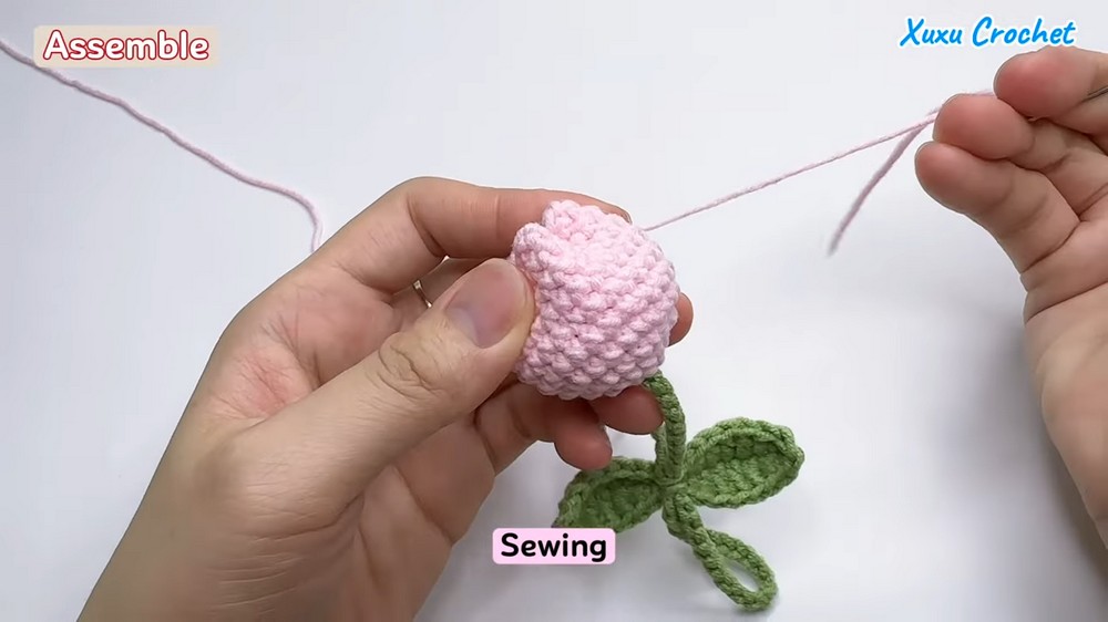 • Using the yarn tail from the flower, sew the opening closed.