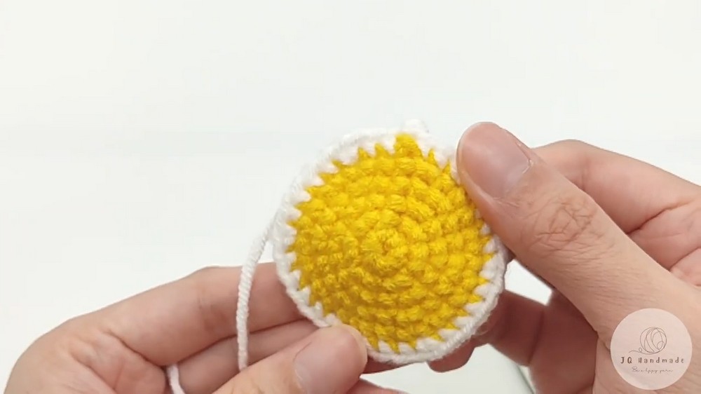 - Crochet as usual, ensuring the white and yellow yarn are securely in the middle.