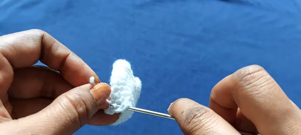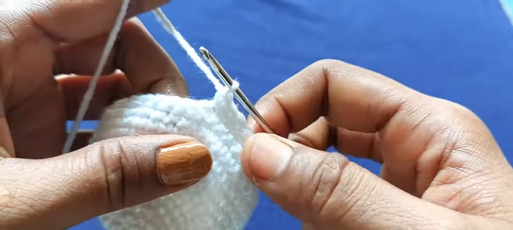 - Finishing: Cut the yarn and leave a long tail to sew the head and body together.