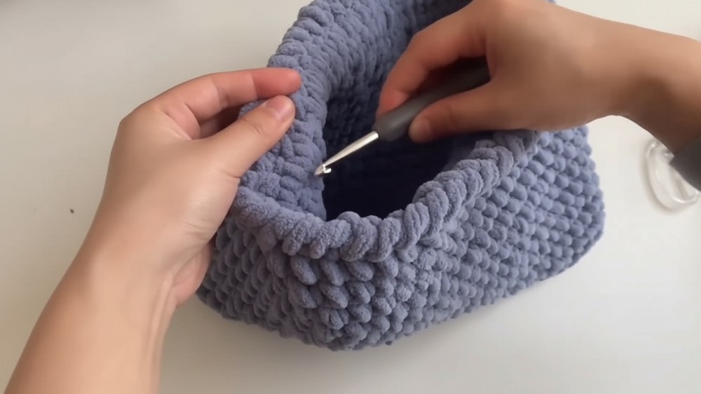 Crab Stitch Finish: The reverse single crochet at the top adds durability and a decorative “corded” look to the opening.