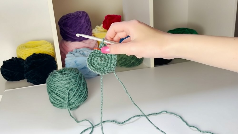 Round 1: Create a magic ring and place six single crochets into it.