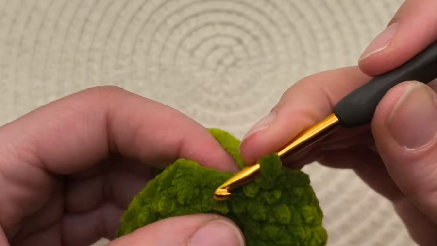 - Yarn: Plush yarn (e.g., Alize Velluto, Himalaya Dolphin Baby, or YarnArt Dolce) uses approximately 25 grams of the main color (green).